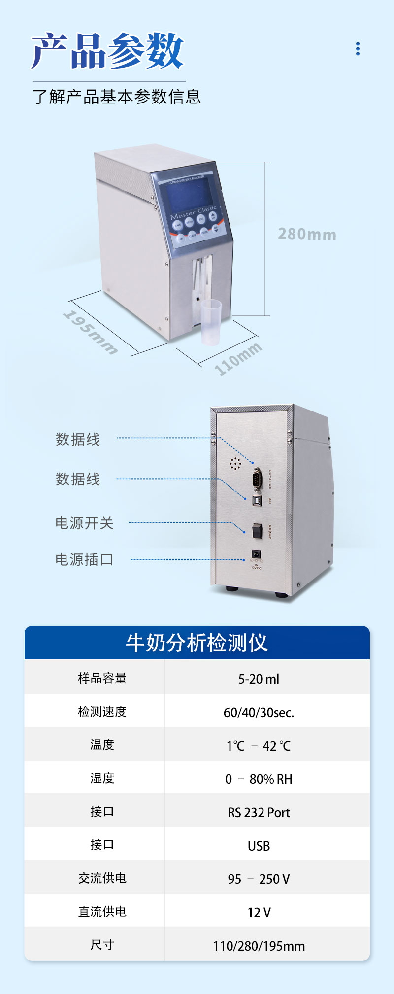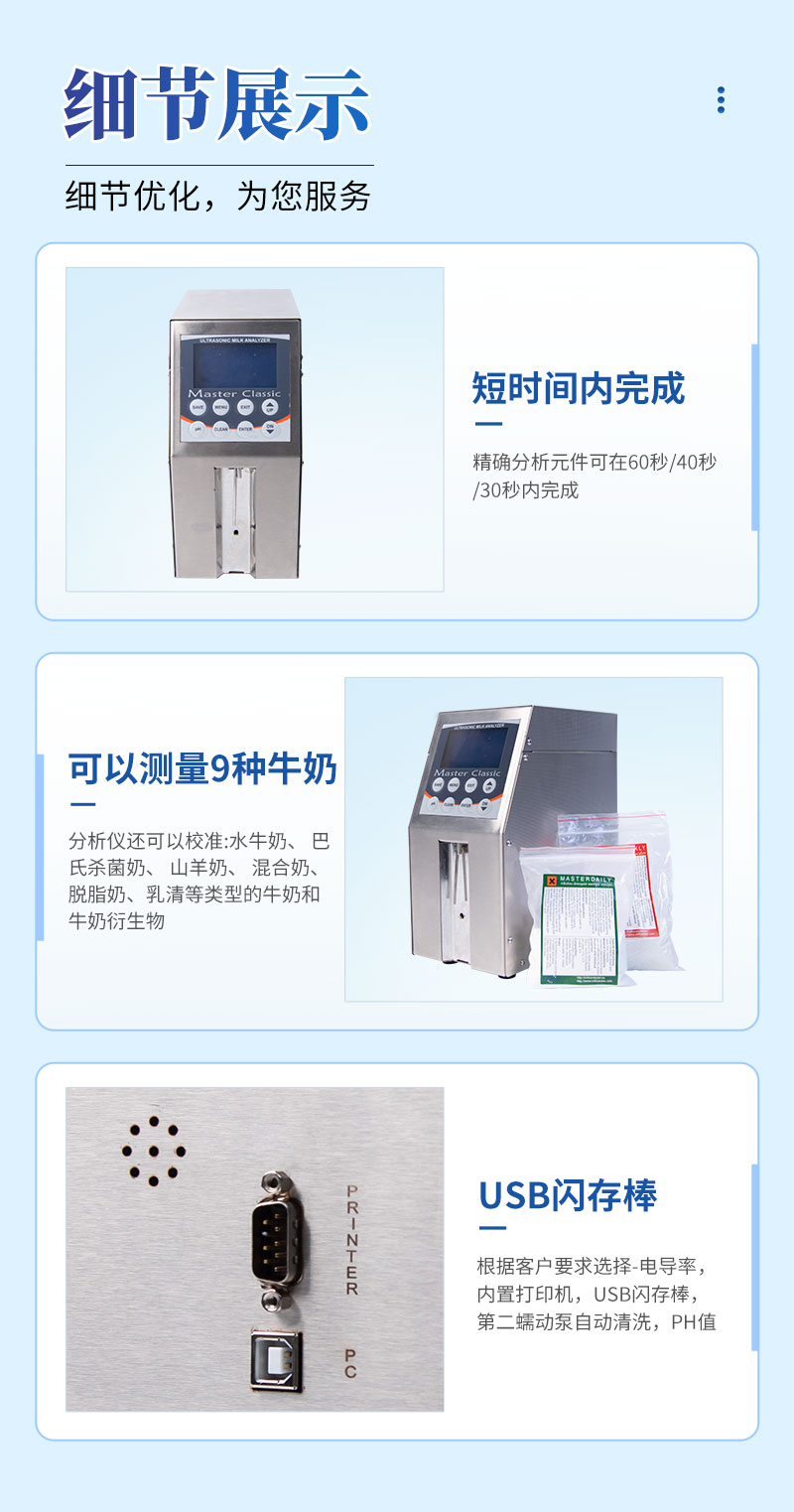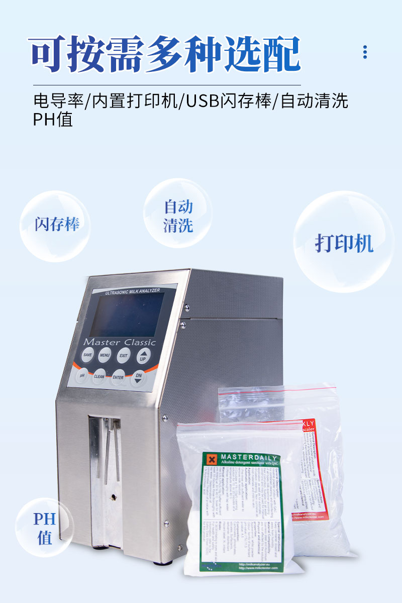 1、MILK CLASSIC是一種高質(zhì)量可以測(cè)量9種牛奶參數(shù)的儀器。