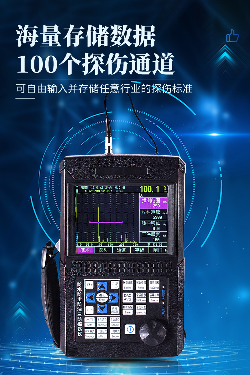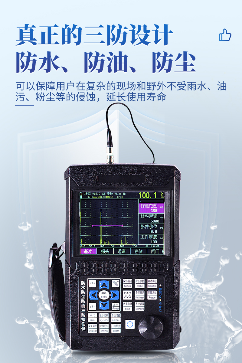 ● 真正的三防設(shè)計(jì),可以保障用戶在復(fù)雜的現(xiàn)場(chǎng)和野外不受雨水、油污、粉塵等的侵蝕,讓探傷儀的使用壽命大大延長(zhǎng)